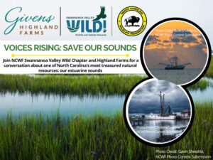 Join NCWF Swannanoa Valley WILD! at Highland Farms in Black Mountain for a conversation about one of North Carolina’s most treasured natural resources: our estuarine sounds. Estuaries, sometimes described as “rainforests of the sea”, are crucial because they filter pollutants, provide critical nurseries for fish and shellfish, as well as economic benefits through recreation, tourism, and jobs, all while supporting immense biodiversity. Our shallow sounds are in deep trouble for several reasons, not the least of which is our fisheries management. It’s not too late to recognize and to cherish North Carolina’s natural treasures for the gift they are and undertake-with dogged determination-the effort to restore their abundance, for humans and the environment. Restoration is not a pipe dream; it is just waiting for us to get on board.